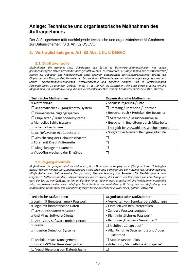 15.2 Der zum Zeitpunkt des Vertragsschlusses bestehende Stand der technischen und organisatorischen Maßnahmen ist als Anlage zu diesem Vertrag beigefügt. Die Parteien sind sich darüber einig, dass zur Anpassung an technische und rechtliche Gegebenheiten Änderungen der technischen und organisatorischen Maßnahmen erforderlich werden können. Wesentliche Änderungen, die die Integrität, Vertraulichkeit oder Verfügbarkeit der personenbezogenen Daten beeinträchtigen können, wird der Auftragnehmer im Voraus mit dem Auftraggeber abstimmen. Maßnahmen, die lediglich geringfügige technische oder organisatorische Änderungen mit sich bringen und die Integrität, Vertraulichkeit und Verfügbarkeit der personenbezogenen Daten nicht negativ beeinträchtigen, können vom Auftragnehmer ohne Abstimmung mit dem Auftraggeber umgesetzt werden. Der Auftraggeber kann jederzeit eine aktuelle Fassung der vom Auftragnehmer getroffenen technischen und organisatorischen Maßnahmen anfordern.